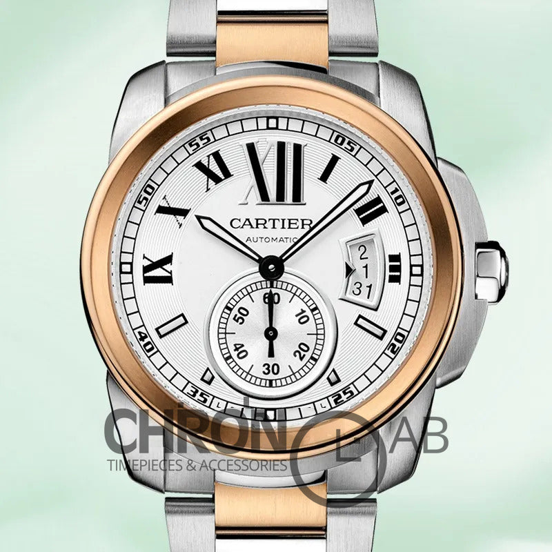 Το διαχρονικό μοντέλο Calibre de Cartier έχει αντιγραφεί με τις τελευταίες και πιο σύγχρονες τεχνικές δημιουργίας πιστών αντιγράφων Replica AAA, έτσι ώστε ακόμη και αν ανοιχτεί από οποιοδήποτε κοσμηματοπωλείο, ο μηχανισμός (Αυτόματος Perpetual τύπου Asian 2836-2831,Swiss Quartz etc.) να είναι όμοιος όπως τα γνήσια Calibre de Cartier Replica. Κάθε μέρος του ρολογιού μέσα και έξω έχει αναπαραχθεί με τα ακριβή γραμμάρια που έχουν μεμονομένα και συνολικά τα εξαρτήματα του γνήσιου Calibre de Cartier Replica Έχει λειτουργία σε ώρα, λεπτό και δευτερόλεπτο και φέρει ένδειξη ημερομηνίας. Το σώμα είναι κατασκευασμένο από ανεξίτηλο ατσάλι (Stainless Steel), υποαλλεργικό με απόχρωση Τ20 και έχει 10 έτη εγγύηση χρώματος. Το μπρασελέ του έχει αναδιπλούμενο κούμπωμα ασφαλείας Oysterlock με EasyLink 5 χιλιοστών. Είναι αδιάβροχο, στεγανοποιημένο έως 10 bar και έχει ρυθμιστική βίδα με ανάγλυφη κορόνα. Ο ζαφειρένιος κρυστάλλος είναι αρκετά ανθεκτικός σε γρατσουνιές