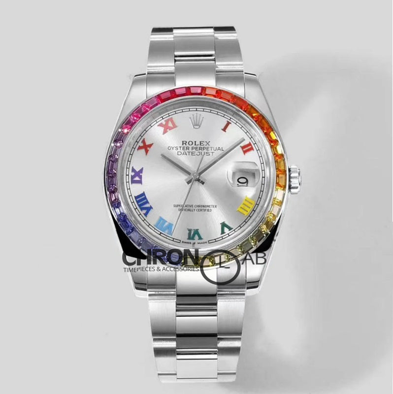 Datejust 41 Silver Dial Rainbow Bezel