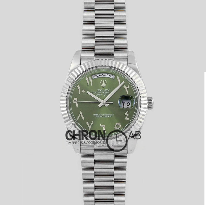 Day-Date 40 228206 Green Dial in Platinum with Arabic Markers