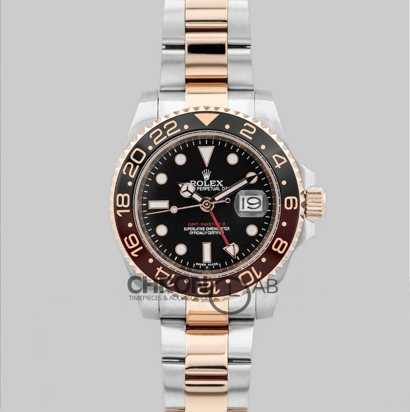 Το διαχρονικό μοντέλο GMT Master II έχει αντιγραφεί με τις τελευταίες και πιο σύγχρονες τεχνικές δημιουργίας πιστών αντιγράφων Replica AAA, έτσι ώστε ακόμη και αν ανοιχτεί από οποιοδήποτε κοσμηματοπωλείο, ο μηχανισμός (διαθέτει Perpetual Type ETA 3135) να είναι όμοιος όπως τα γνήσια Rolex Replica. Κάθε μέρος του ρολογιού μέσα και έξω έχει αναπαραχθεί με τα ακριβή γραμμάρια που έχουν μεμονομένα και συνολικά τα εξαρτήματα του γνήσιου Rolex Replica Έχει λειτουργία σε ώρα, λεπτό και δευτερόλεπτο και φέρει ένδειξη ημερομηνίας. Το σώμα είναι κατασκευασμένο από ανεξίτηλο ατσάλι (Stainless Steel), υποαλλεργικό με απόχρωση Τ20 και έχει 10 έτη εγγύηση χρώματος. Το μπρασελέ του έχει αναδιπλούμενο κούμπωμα ασφαλείας Oysterlock με EasyLink 5 χιλιοστών. Είναι αδιάβροχο, στεγανοποιημένο έως 10 bar και έχει ρυθμιστική βίδα με ανάγλυφη κορόνα. Ο ζαφειρένιος κρυστάλλος είναι αρκετά ανθεκτικός σε γρατσουνιές και έχει μεγέθυνση (επιπέδου 2.5x) πάνω από την ημερομηνία