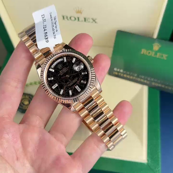 Το Rolex Day-Date 228235 Replica της GMF Factory είναι μια κορυφαία ρέπλικα που εντυπωσιάζει με την πολυτέλεια και τη λεπτομέρεια κατασκευής της. Με κάσα 40mm, επίστρωση 18K rose gold wrapped και εντυπωσιακό φυσικό Eisenkiesel dial, προσφέρει μοναδική κομψότητα και παρουσία στον καρπό.