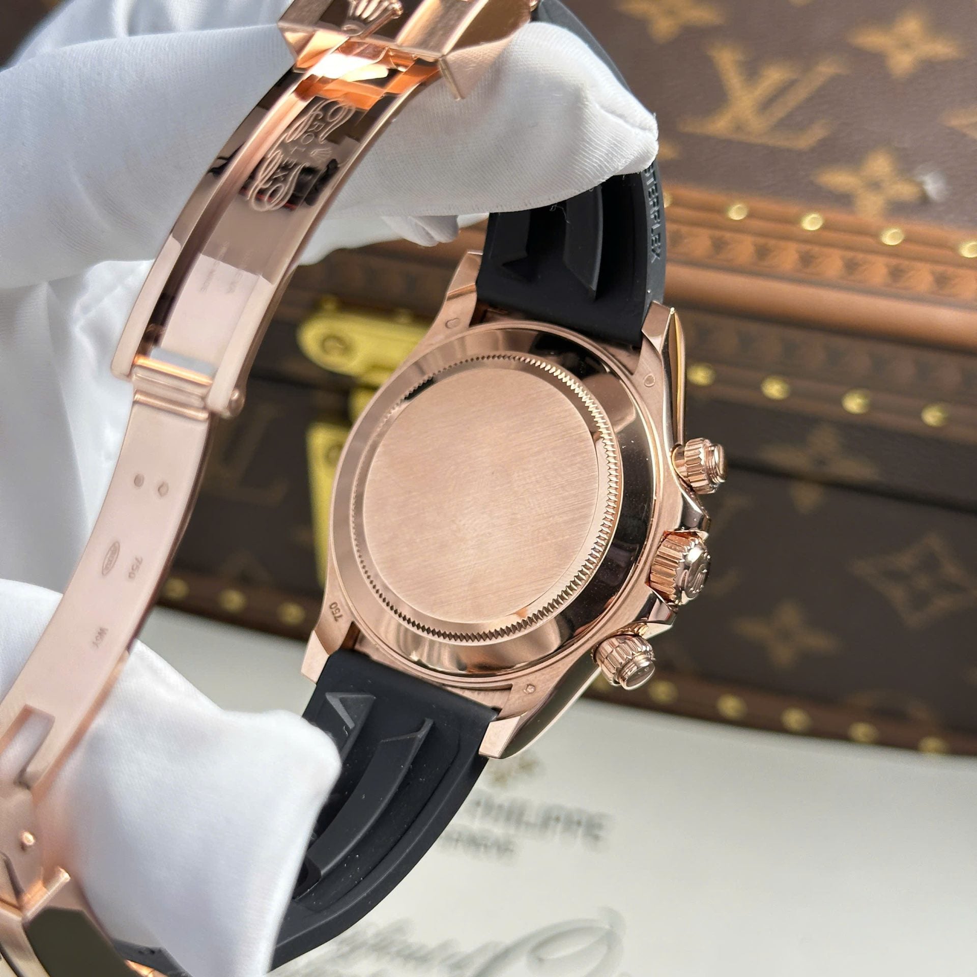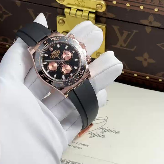 Ανακαλύψτε το Rolex Daytona 116515LN Replica από την 11 Factory, μια κορυφαία 1:1 ρεπλίκα που συνδυάζει σπορ χαρακτήρα με πολυτέλεια. Η έκδοση με μαύρο καντράν και Gold Wrapped 18K Rose Gold εμφάνιση, αποδίδει με ακρίβεια το στυλ του αυθεντικού μοντέλου, ενώ ο Swiss Clone Chronograph μηχανισμός εξασφαλίζει υψηλή λειτουργικότητα.