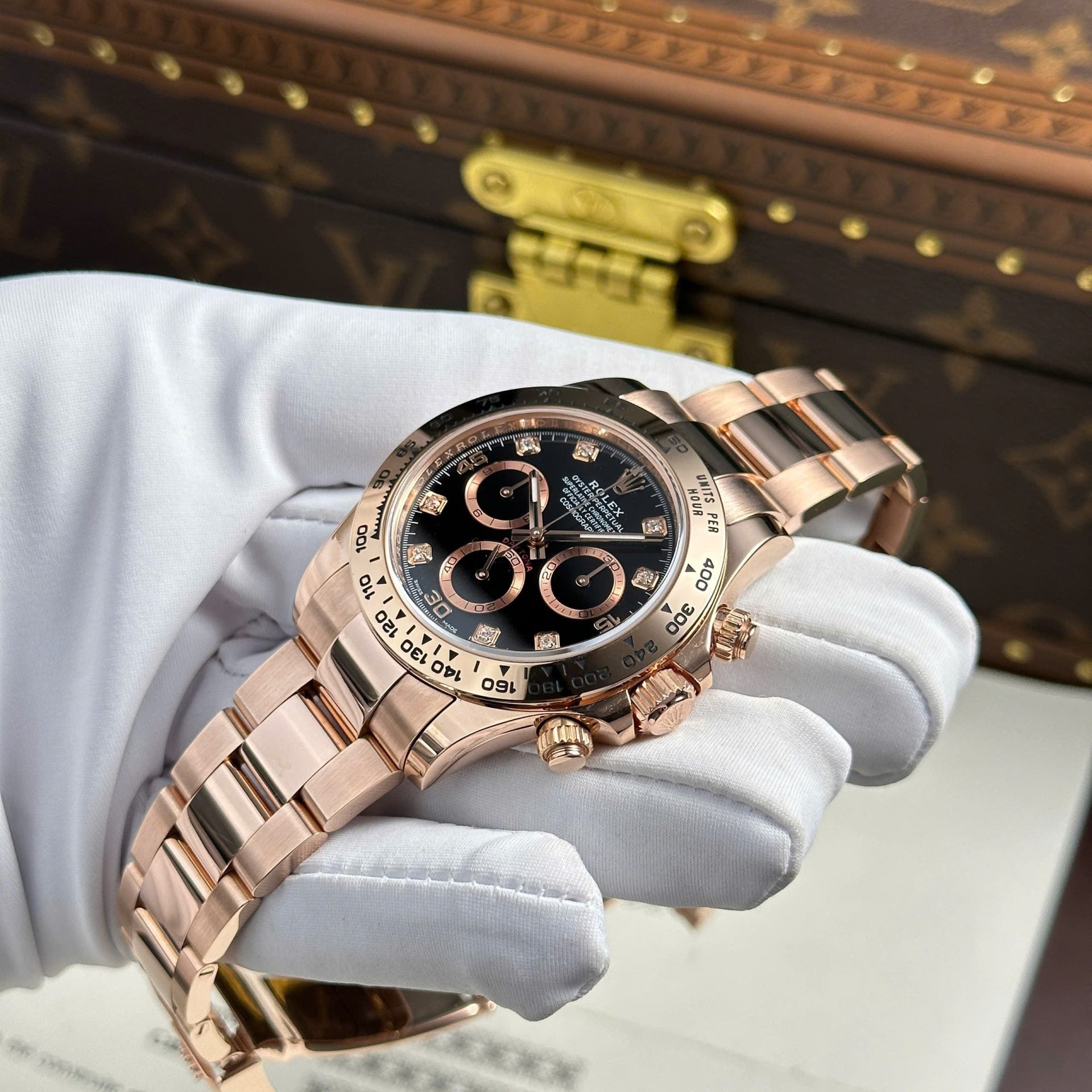 Rolex Cosmograph Daytona Black Dial Replica Watch | Custom Gold Wrapped | 40mm | Sport Elegance | 145gr