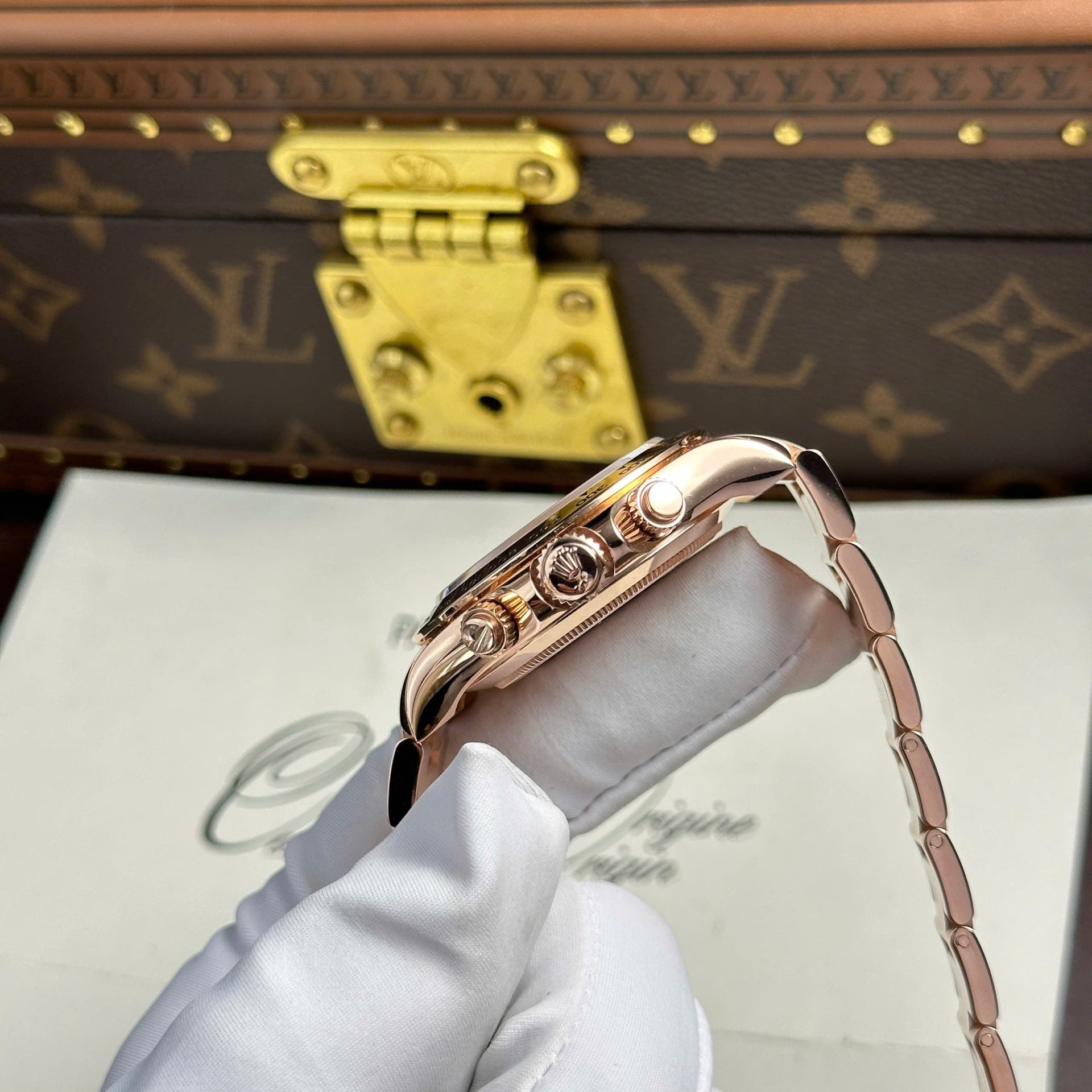 Ανακαλύψτε το Rolex Cosmograph Daytona Black Dial Replica Watch, μια εντυπωσιακή 1:1 ρεπλίκα με Gold Wrapped εμφάνιση και μαύρο καντράν, σχεδιασμένη για να αποπνέει ταυτόχρονα πολυτέλεια και αγωνιστικό χαρακτήρα. Ιδανικό για όσους αναζητούν την εμβληματική Daytona με custom χρυσή αισθητική και ρεαλιστικές προδιαγραφές.