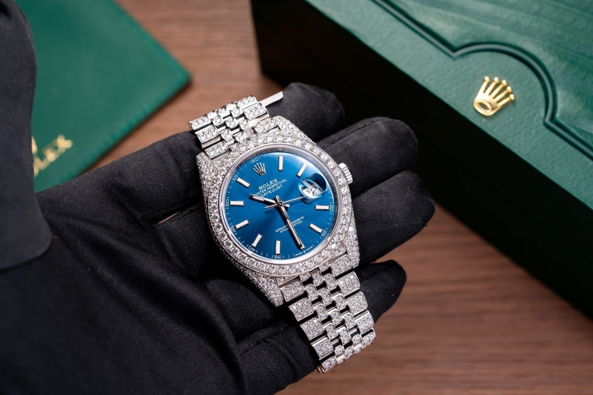 Rolex DateJust 126334 Replica Watch Blue Dial Full Diamond Moissanite 41mm Clone