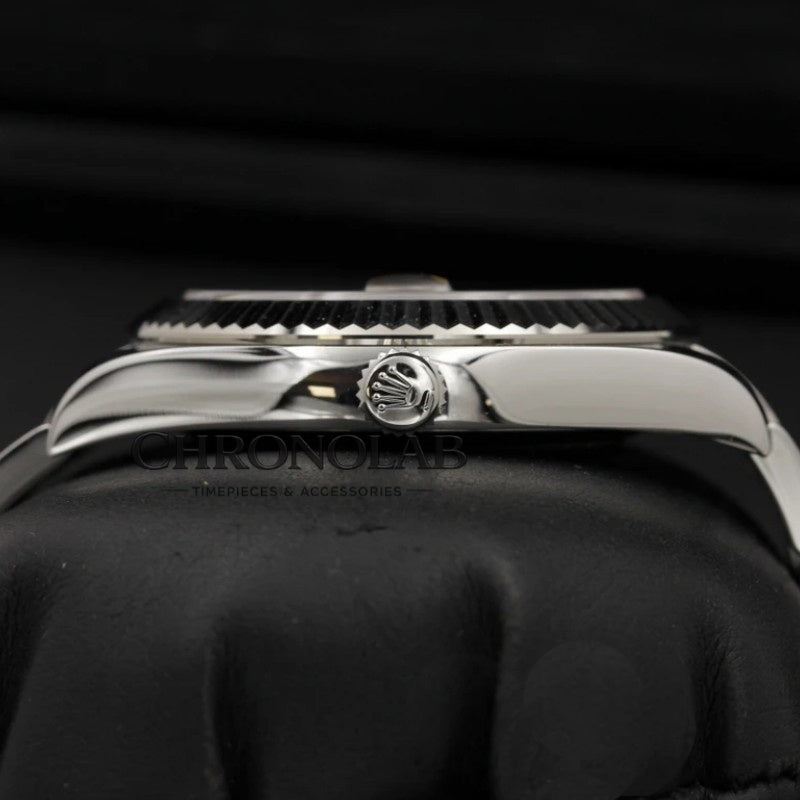 Το Silver Diamond Dial του Rolex Datejust II 116334 προσφέρει εκλεπτυσμένη αισθητική, με διαμαντένιους hour markers που αναβαθμίζουν τον luxury χαρακτήρα του ρολογιού. Η κάσα 36mm από ανοξείδωτο ατσάλι υψηλής ποιότητας και η χαρακτηριστική fluted στεφάνη δημιουργούν μια επιβλητική αλλά απόλυτα ισορροπημένη εμφάνιση στον καρπό.