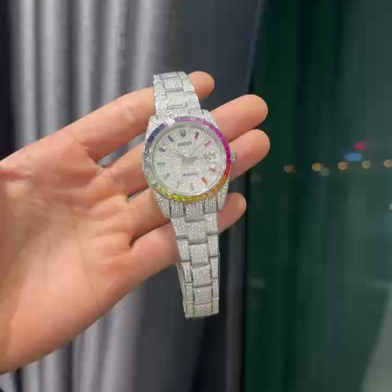 Rolex DateJust Rainbow Replica 41mm – Custom Moissanite Diamonds