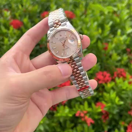 Το Rolex DateJust Demi Pink Dial Replica 1:1 από την EW Factory είναι η απόλυτη έκφραση κομψότητας και στιλ με μια μοντέρνα, ρομαντική πινελιά. Με καντράν σε demi ροζ απόχρωση, μπρασελέ σε δίχρωμο τόνου (ατσάλι & ροζ χρυσό) και χαρακτηριστικό σχεδιασμό Rolex, το 41mm αυτό ρολόι προσφέρει πολυτέλεια και φινέτσα σε replica έκδοση υψηλής ποιότητας.