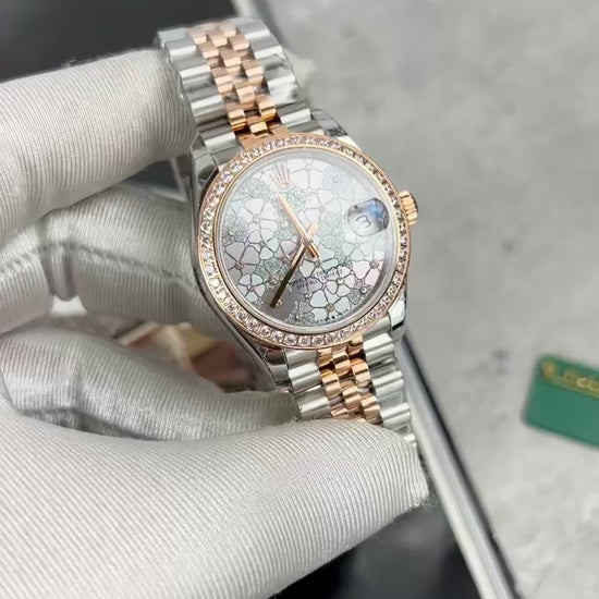Rolex DateJust Replica Watch | Flower Dial | Diamond Bezel | 31mm