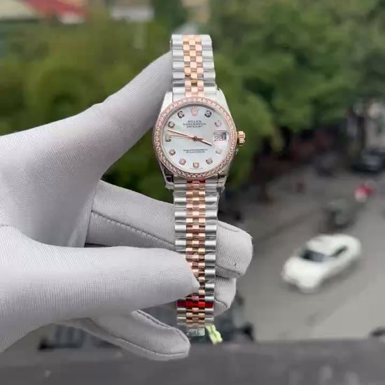 Rolex DateJust Replica Watch | Mother of Pearl Dial | Stone Bezel | 31mm | EW Factory