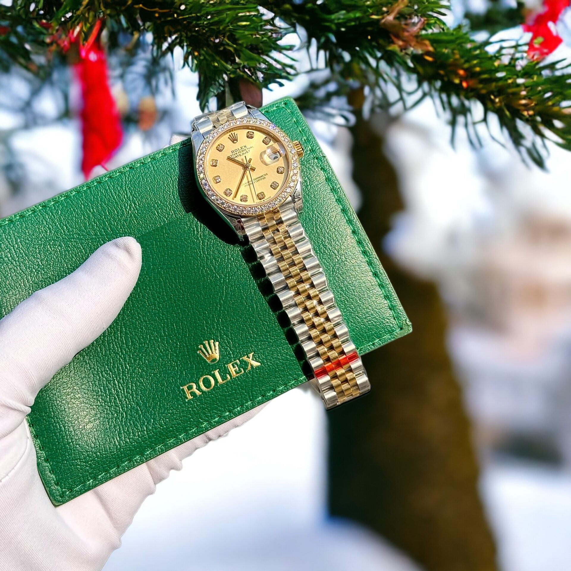 Rolex DateJust Replica Watch | Moissanite Diamond Bezel | Yellow Dial | 31mm