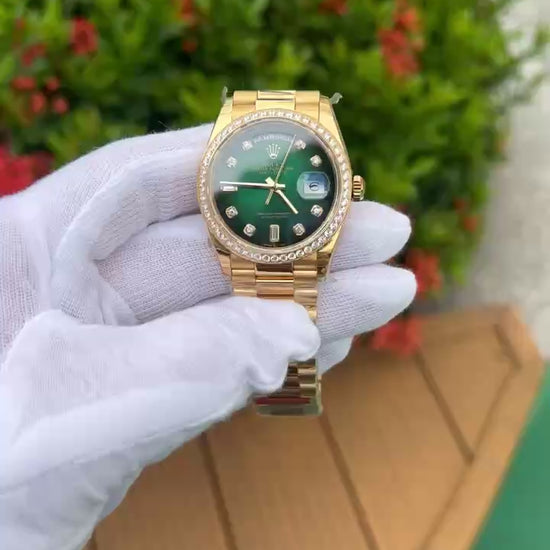 Το Rolex Day-Date 128348RBR Ombre Green Dial Replica είναι μια κομψή και εκλεπτυσμένη επιλογή για όσους επιθυμούν ένα ρολόι με διαχρονική φινέτσα και πολυτέλεια. Με κάσα και μπρασελέ σε χρυσό τόνο, διακοσμημένο με διαμάντια και εντυπωσιακό καντράν σε πράσινη ombre απόχρωση, αυτό το ρολόι προσφέρει εμφάνιση υψηλής αισθητικής σε replica έκδοση ακριβείας από την αξιόπιστη EW Factory.