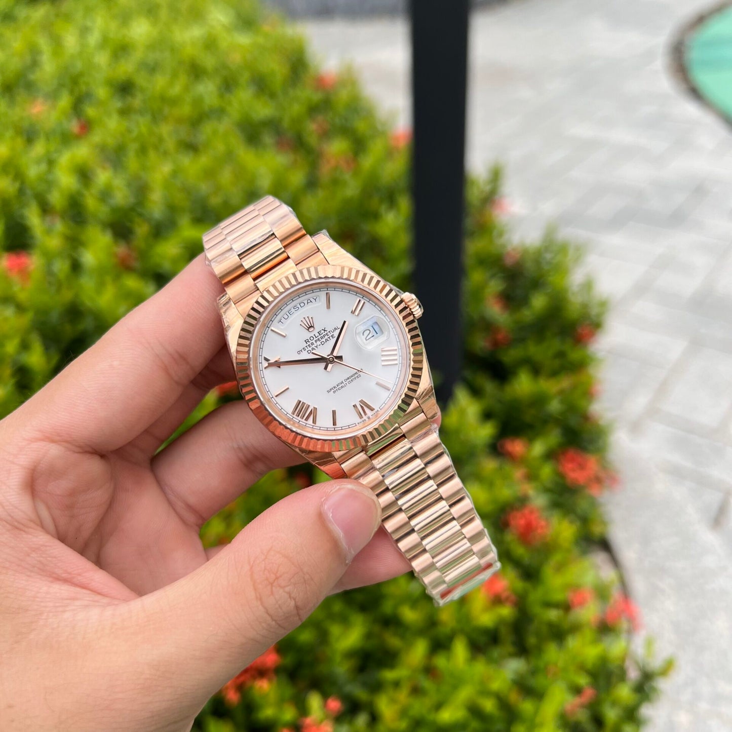 Rolex Day-Date Rose Gold Best Replica Watch White Dial EW Factory 40mm