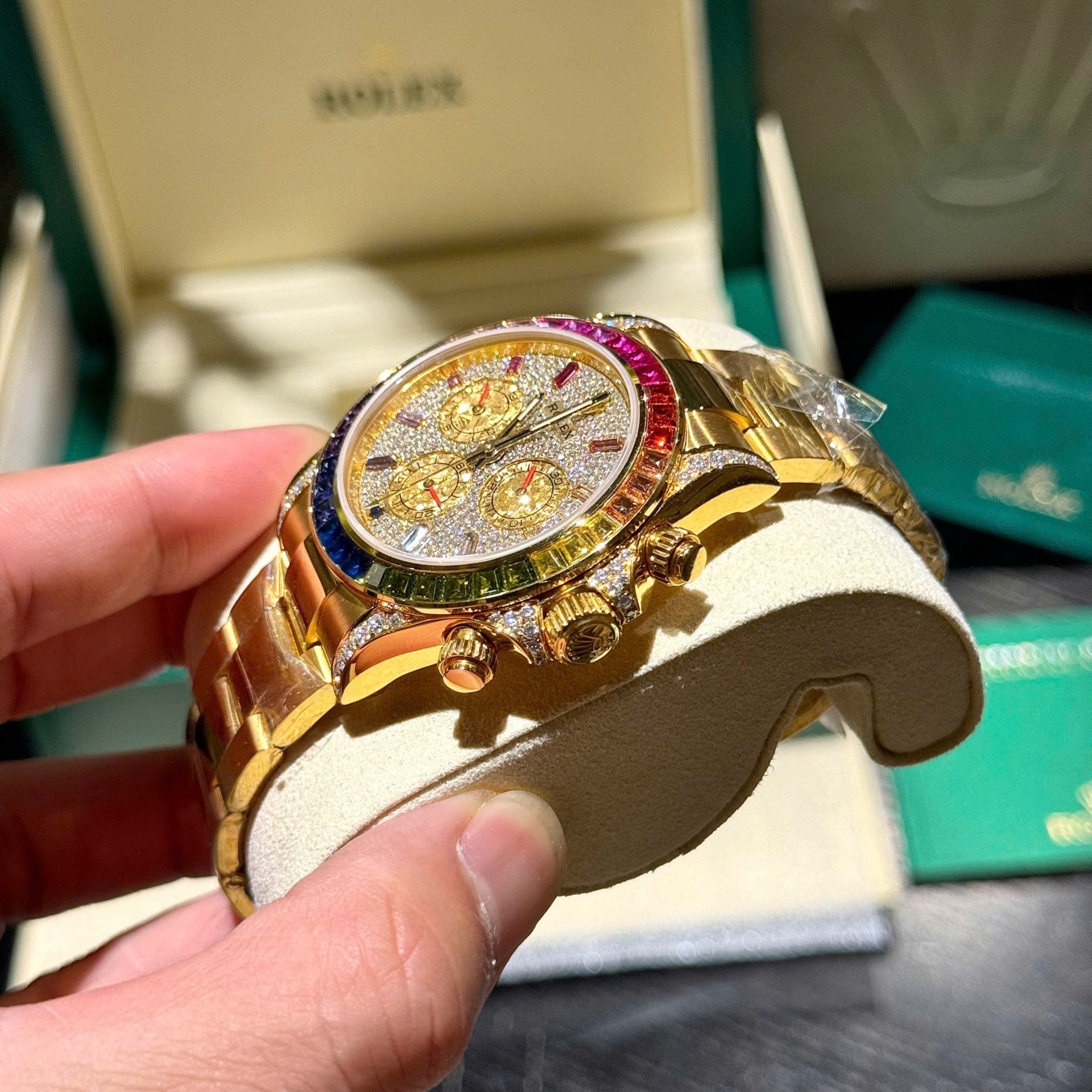 Rolex Daytona 116598RBOW Refined Moissanite & Synthentic Gemstone 18K Gold Wrapped 40mm Clone