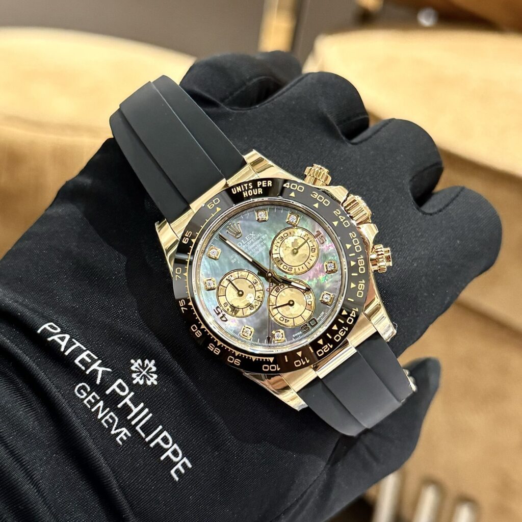 Το Rolex Daytona Replica 40mm από το BT Factory ξεχωρίζει με το εντυπωσιακό μοβ Mother of Pearl καντράν, διακοσμημένο με μοισσανίτη (Moissanite), που προσφέρει πολυτελή λάμψη και μοναδικό στυλ. Η ρεπλίκα συνδυάζει την κομψότητα με την υψηλή ακρίβεια, χάρη στον Swiss Clone μηχανισμό και την αψεγάδιαστη κατασκευή της