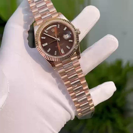 Το Rolex Day-Date 228235 Replica 40mm από την GM Factory είναι ένα ρολόι-δήλωση, που αποπνέει κύρος και πολυτέλεια. Η κάσα και το μπρασελέ είναι επιμελώς επενδυμένα με 18K gold wrapped, ενώ το σοκολατί καντράν με ρωμαϊκούς αριθμούς προσδίδει μια αίσθηση αυθεντικής βασιλικής κομψότητας.