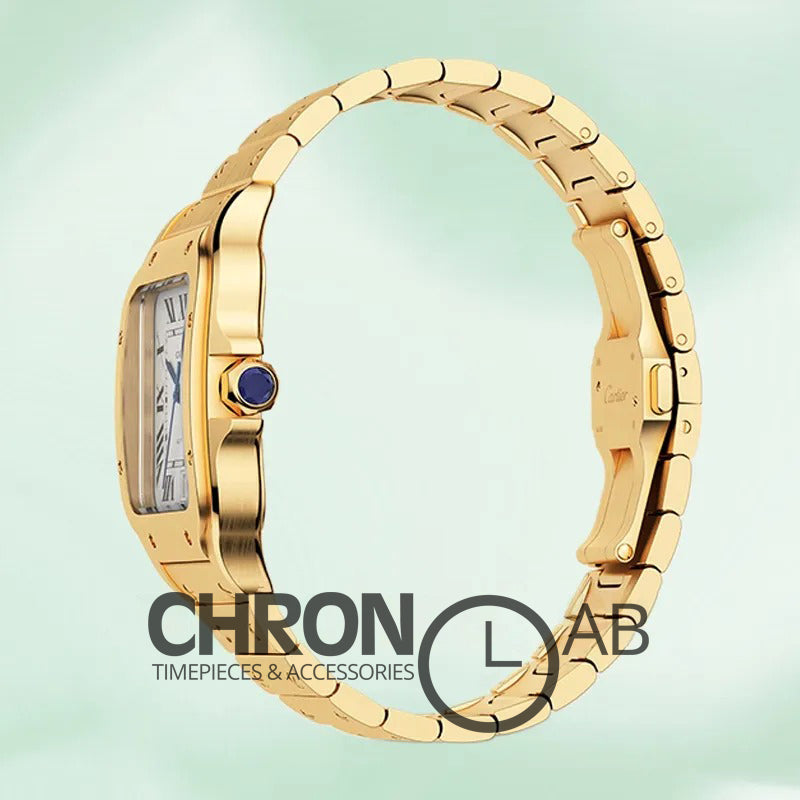 Το διαχρονικό μοντέλο Santos de Cartier έχει αντιγραφεί με τις τελευταίες και πιο σύγχρονες τεχνικές δημιουργίας πιστών αντιγράφων Replica AAA, έτσι ώστε ακόμη και αν ανοιχτεί από οποιοδήποτε κοσμηματοπωλείο, ο μηχανισμός (Αυτόματος Perpetual τύπου Asian 2836-2831,Swiss Quartz etc.) να είναι όμοιος όπως τα γνήσια Santos de Cartier Replica. Κάθε μέρος του ρολογιού μέσα και έξω έχει αναπαραχθεί με τα ακριβή γραμμάρια που έχουν μεμονομένα και συνολικά τα εξαρτήματα του γνήσιου Santos de Cartier Replica Έχει λειτουργία σε ώρα, λεπτό και δευτερόλεπτο και φέρει ένδειξη ημερομηνίας. Το σώμα είναι κατασκευασμένο από ανεξίτηλο ατσάλι (Stainless Steel), υποαλλεργικό με απόχρωση Τ20 και έχει 10 έτη εγγύηση χρώματος. Το μπρασελέ του έχει αναδιπλούμενο κούμπωμα ασφαλείας Oysterlock με EasyLink 5 χιλιοστών. Είναι αδιάβροχο, στεγανοποιημένο έως 10 bar και έχει ρυθμιστική βίδα με ανάγλυφη κορόνα. Ο ζαφειρένιος κρυστάλλος είναι αρκετά ανθεκτικός σε γρατσουνιές