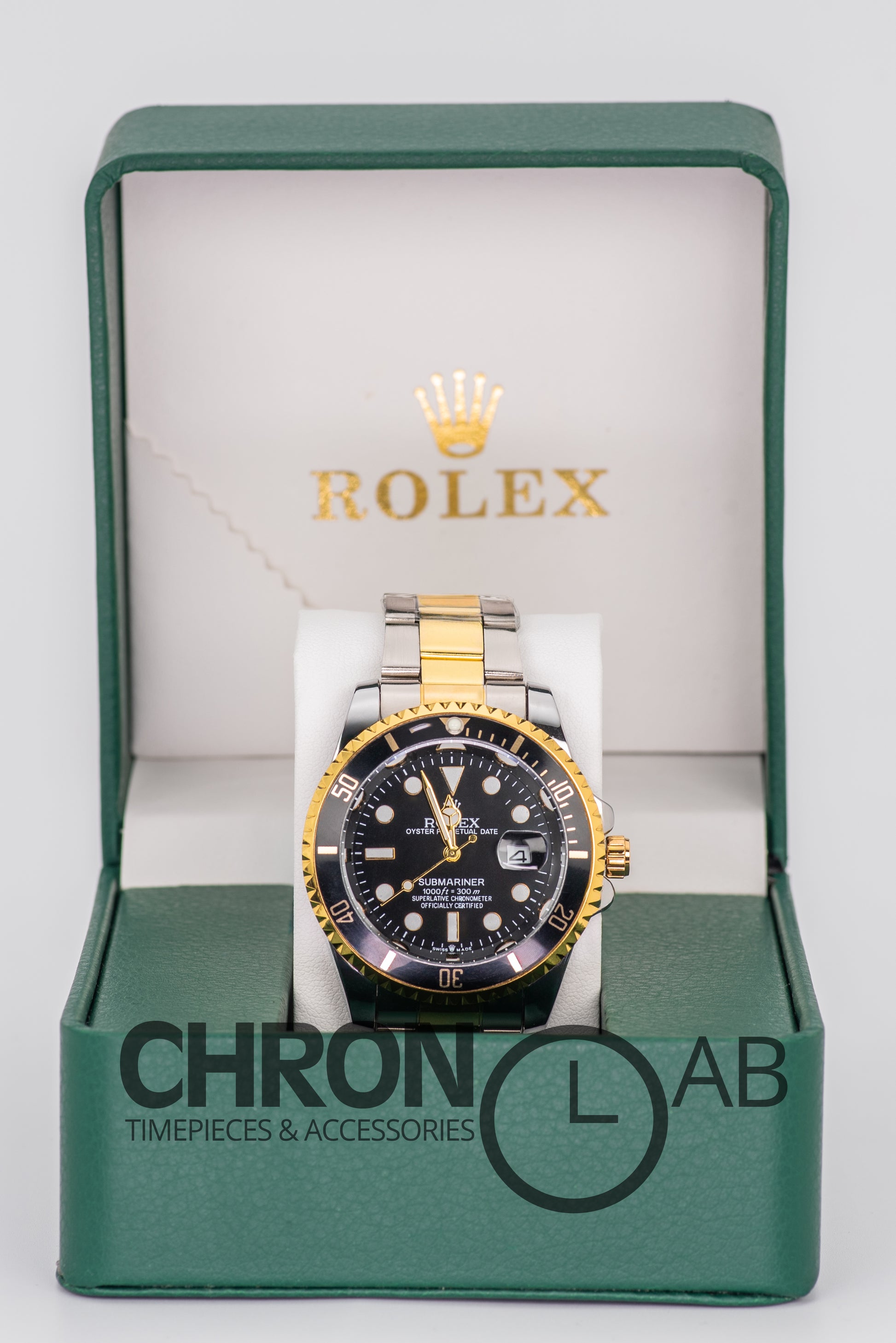 Το διαχρονικό μοντέλο Submariner έχει αντιγραφεί με τις τελευταίες και πιο σύγχρονες τεχνικές δημιουργίας πιστών αντιγράφων Replica AAA, έτσι ώστε ακόμη και αν ανοιχτεί από οποιοδήποτε κοσμηματοπωλείο, ο μηχανισμός (Asian 2813 σε 23J QUARTZ - με συνεχή λειτουργία χρονογράφου) να είναι όμοιος όπως τα γνήσια Rolex Replica. Κάθε μέρος του ρολογιού μέσα και έξω έχει αναπαραχθεί με τα ακριβή γραμμάρια που έχουν μεμονομένα και συνολικά τα εξαρτήματα του γνήσιου Rolex Replica Έχει λειτουργία σε ώρα, λεπτό και δευτερόλεπτο και φέρει ένδειξη ημερομηνίας. Το σώμα είναι κατασκευασμένο από ανεξίτηλο ατσάλι (Stainless Steel), υποαλλεργικό με απόχρωση Τ20 και έχει 10 έτη εγγύηση χρώματος. Το μπρασελέ του έχει αναδιπλούμενο κούμπωμα ασφαλείας Oysterlock με EasyLink 5 χιλιοστών. Είναι αδιάβροχο, στεγανοποιημένο έως 10 bar και έχει ρυθμιστική βίδα με ανάγλυφη κορόνα. Ο ζαφειρένιος κρυστάλλος είναι αρκετά ανθεκτικός σε γρατσουνιές και έχει μεγέθυνση (επιπέδου 2.5x) πάνω από την ημερομηνία