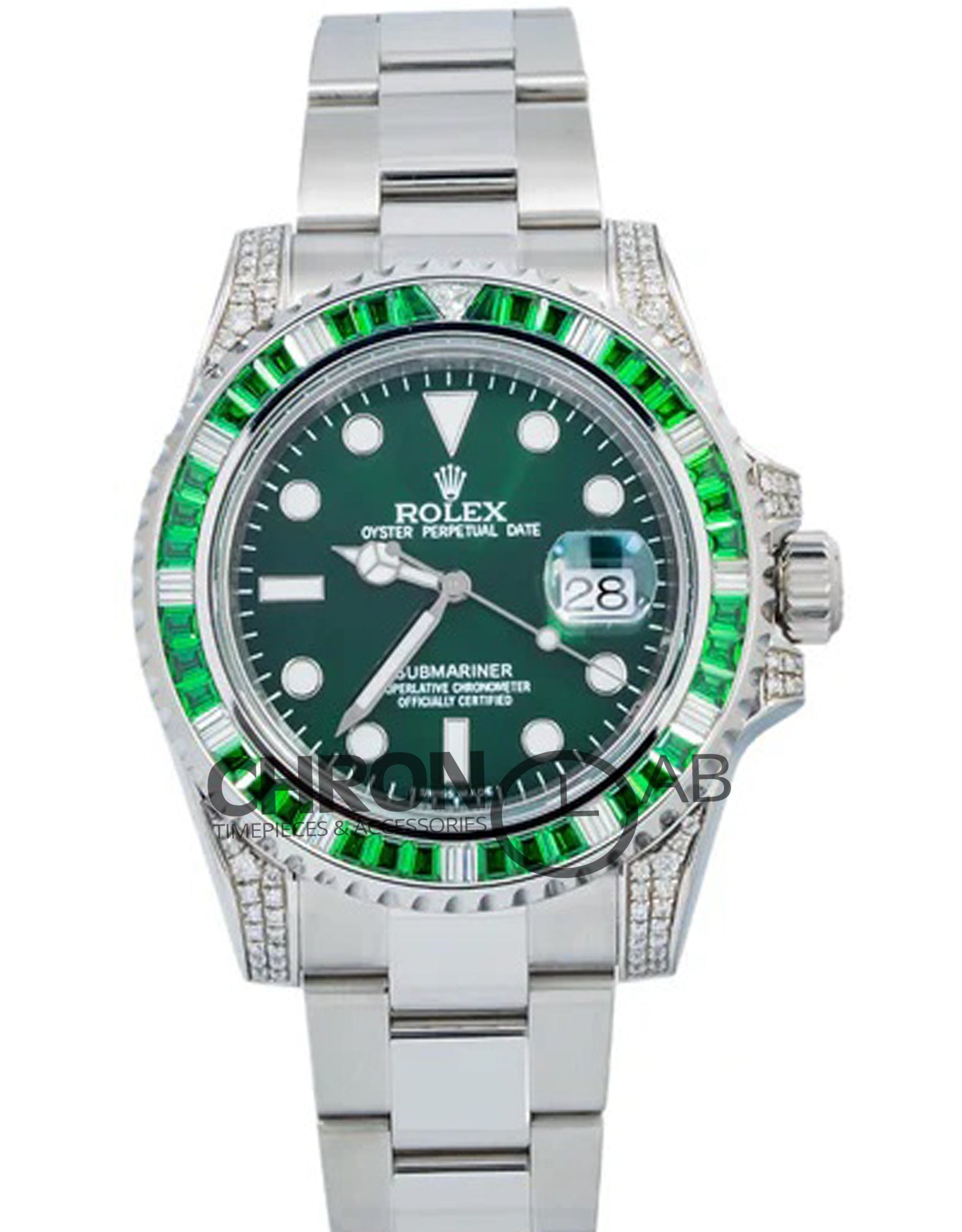 Submariner Date 116610LN Green Dial With Diamond Lugs And Bezel