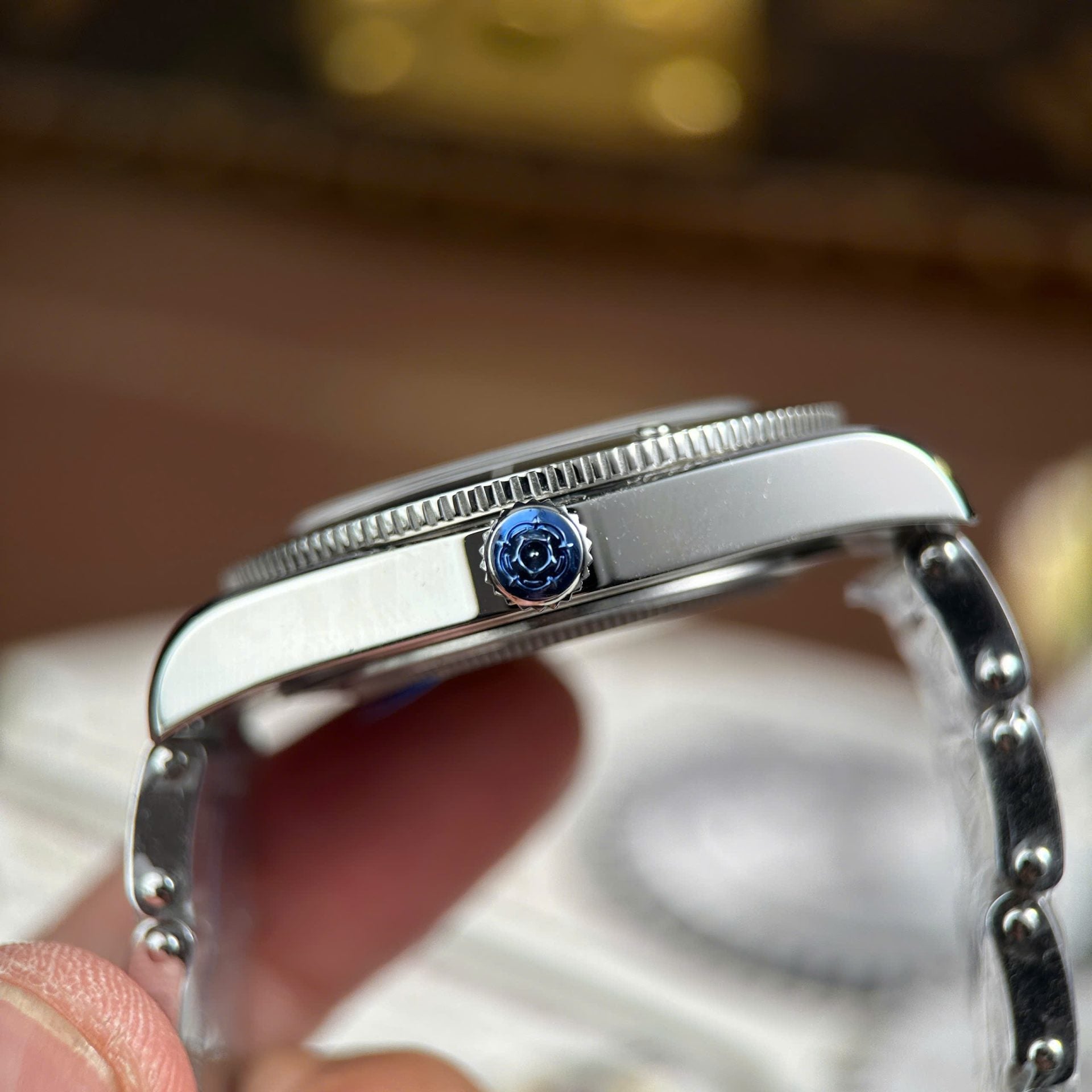 Η περιστρεφόμενη στεφάνη με αλουμίνιο insert και η αδιάβροχη κατασκευή χαρίζουν καθημερινή πρακτικότητα, ενώ η κλασική Oyster-style μπρασελέ ολοκληρώνει τον διαχρονικό σχεδιασμό.