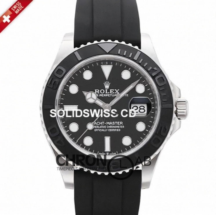 Το διαχρονικό μοντέλο Yacht Master έχει αντιγραφεί με τις τελευταίες και πιο σύγχρονες τεχνικές δημιουργίας πιστών αντιγράφων Replica AAA, έτσι ώστε ακόμη και αν ανοιχτεί από οποιοδήποτε κοσμηματοπωλείο, ο μηχανισμός (διαθέτει Perpetual Type ETA 3135) να είναι όμοιος όπως τα γνήσια Rolex Replica. Κάθε μέρος του ρολογιού μέσα και έξω έχει αναπαραχθεί με τα ακριβή γραμμάρια που έχουν μεμονομένα και συνολικά τα εξαρτήματα του γνήσιου Rolex Replica Έχει λειτουργία σε ώρα, λεπτό και δευτερόλεπτο και φέρει ένδειξη ημερομηνίας. Το σώμα είναι κατασκευασμένο από ανεξίτηλο ατσάλι (Stainless Steel), υποαλλεργικό με απόχρωση Τ20 και έχει 10 έτη εγγύηση χρώματος. Το μπρασελέ του έχει αναδιπλούμενο κούμπωμα ασφαλείας Oysterlock με EasyLink 5 χιλιοστών. Είναι αδιάβροχο, στεγανοποιημένο έως 10 bar και έχει ρυθμιστική βίδα με ανάγλυφη κορόνα. Ο ζαφειρένιος κρυστάλλος είναι αρκετά ανθεκτικός σε γρατσουνιές και έχει μεγέθυνση (επιπέδου 2.5x) πάνω από την ημερομηνία
